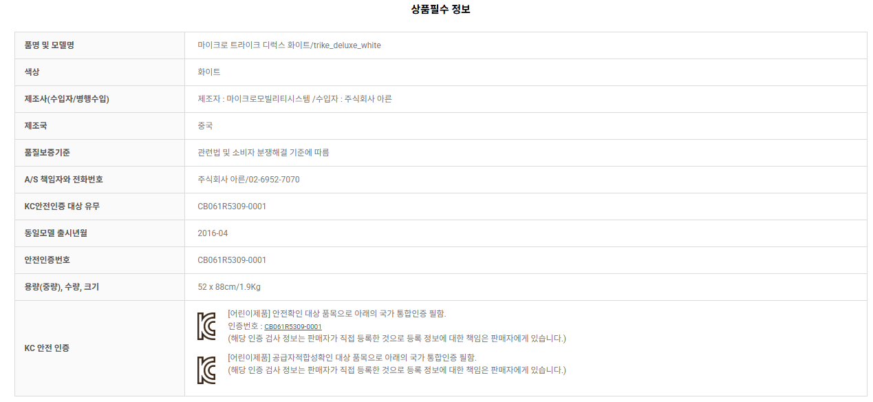 마이크로 초경량 트라이크 디럭스 화이트