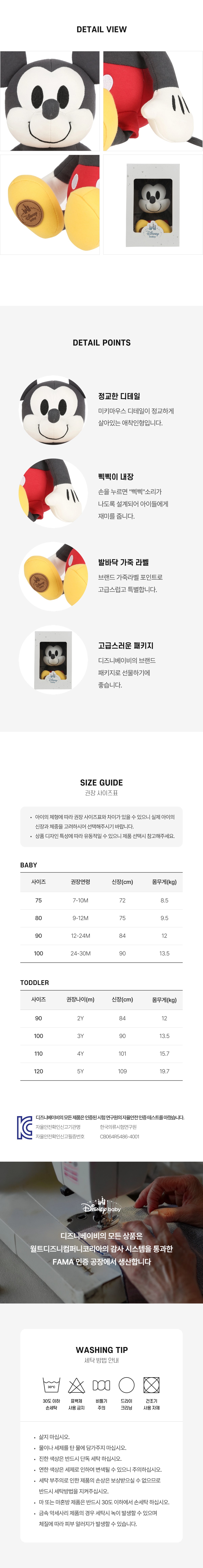디즈니베이비 미키 애착인형(BLACK)