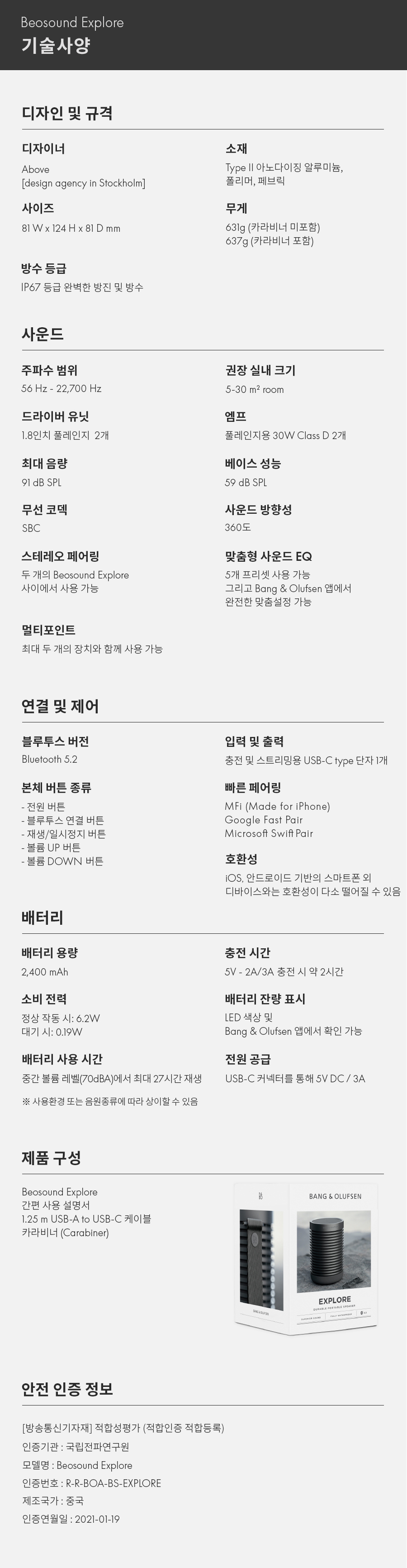 뱅앤올룹슨 익스플로어 블루투스 스피커