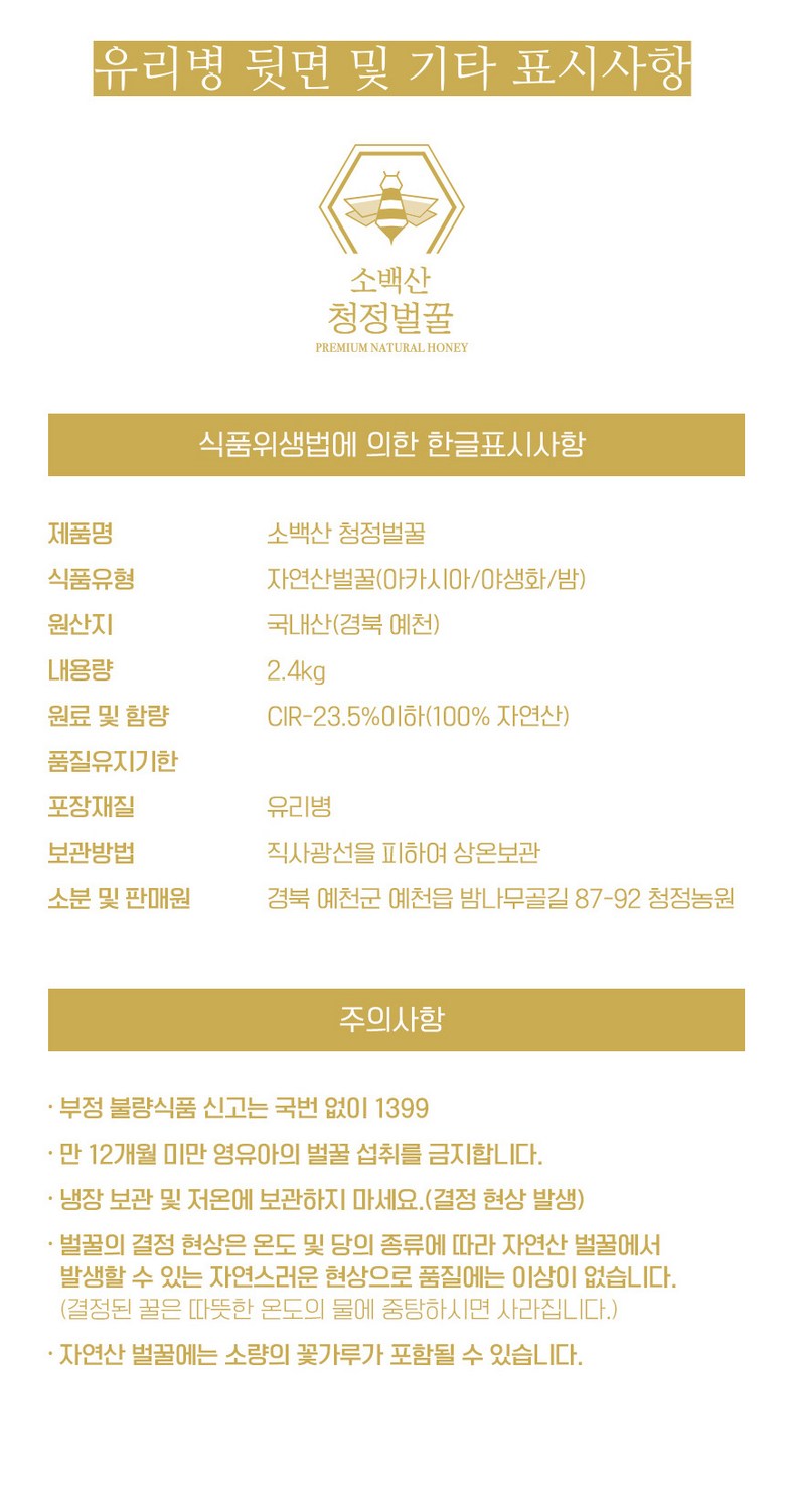 소백산청정농원 아카시아꿀 100% 자연산