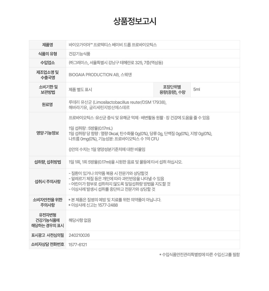 바이오가이아 프로텍티스 베이비드롭 액상 프로바이오틱스 5ml