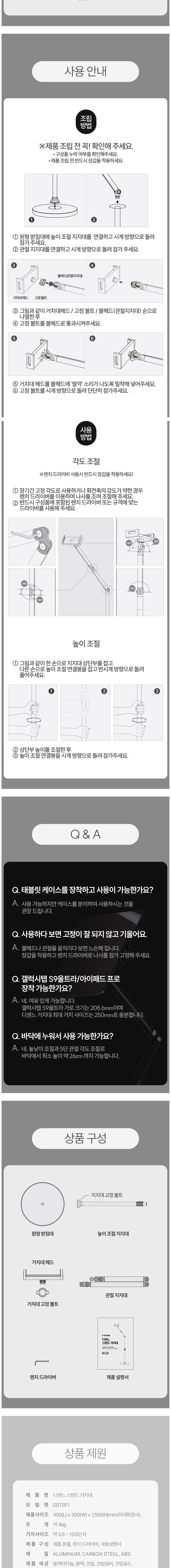 디센느 스탠드 태블릿 핸드폰 거치대 패드 탭 높이조절 침대 자바라