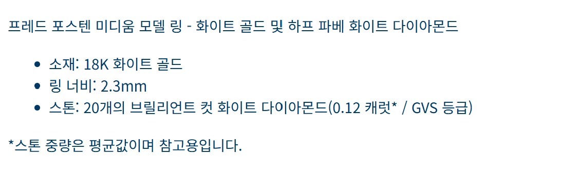 프레드 포스텐 링 (18K 화이트 골드 및 하프 파베 다이아몬드 미디움 모델)
