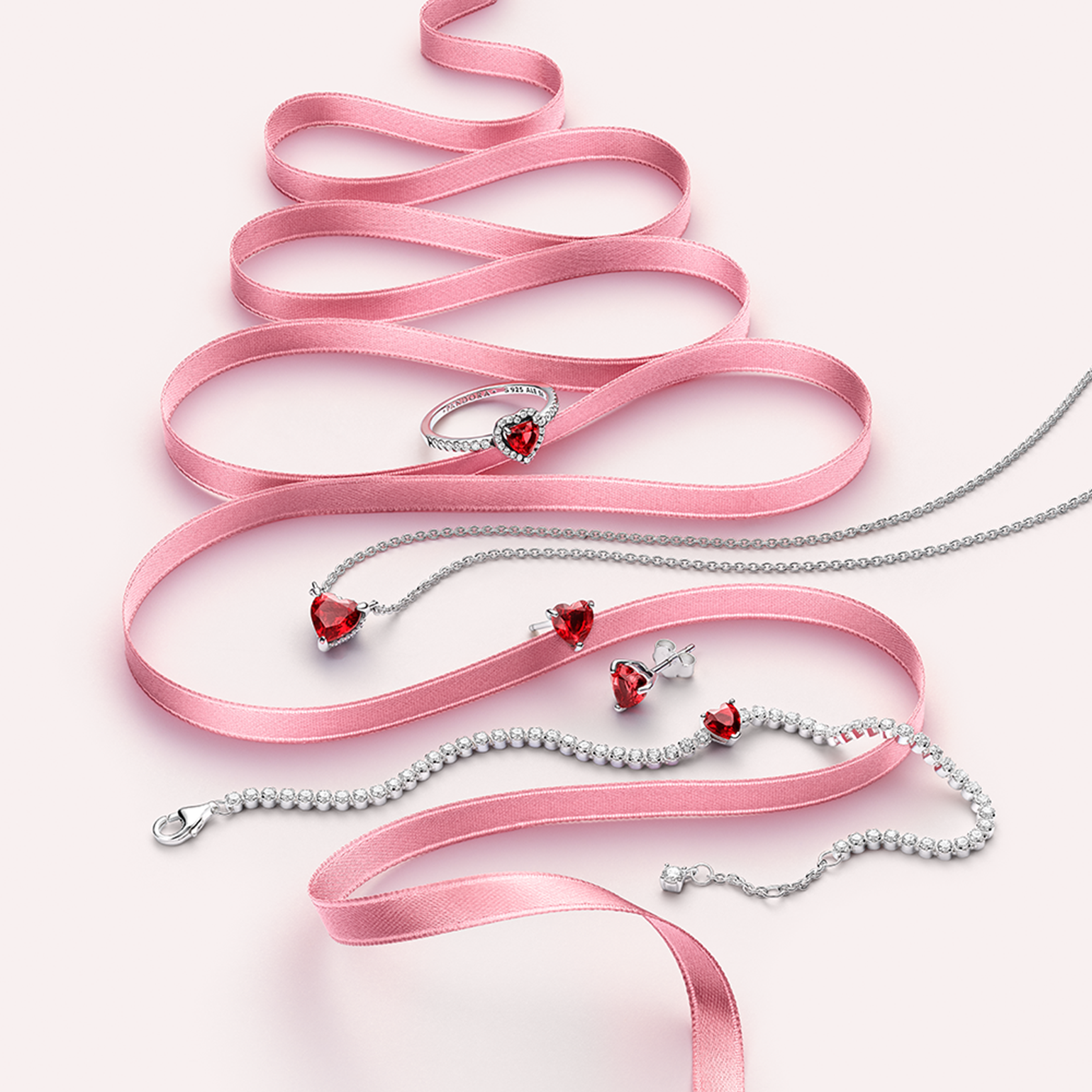 판도라 레드 스파클링 하드 테니스 브레이슬릿