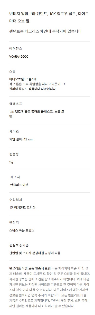 반클리프 빈티지 알함브라 펜던트