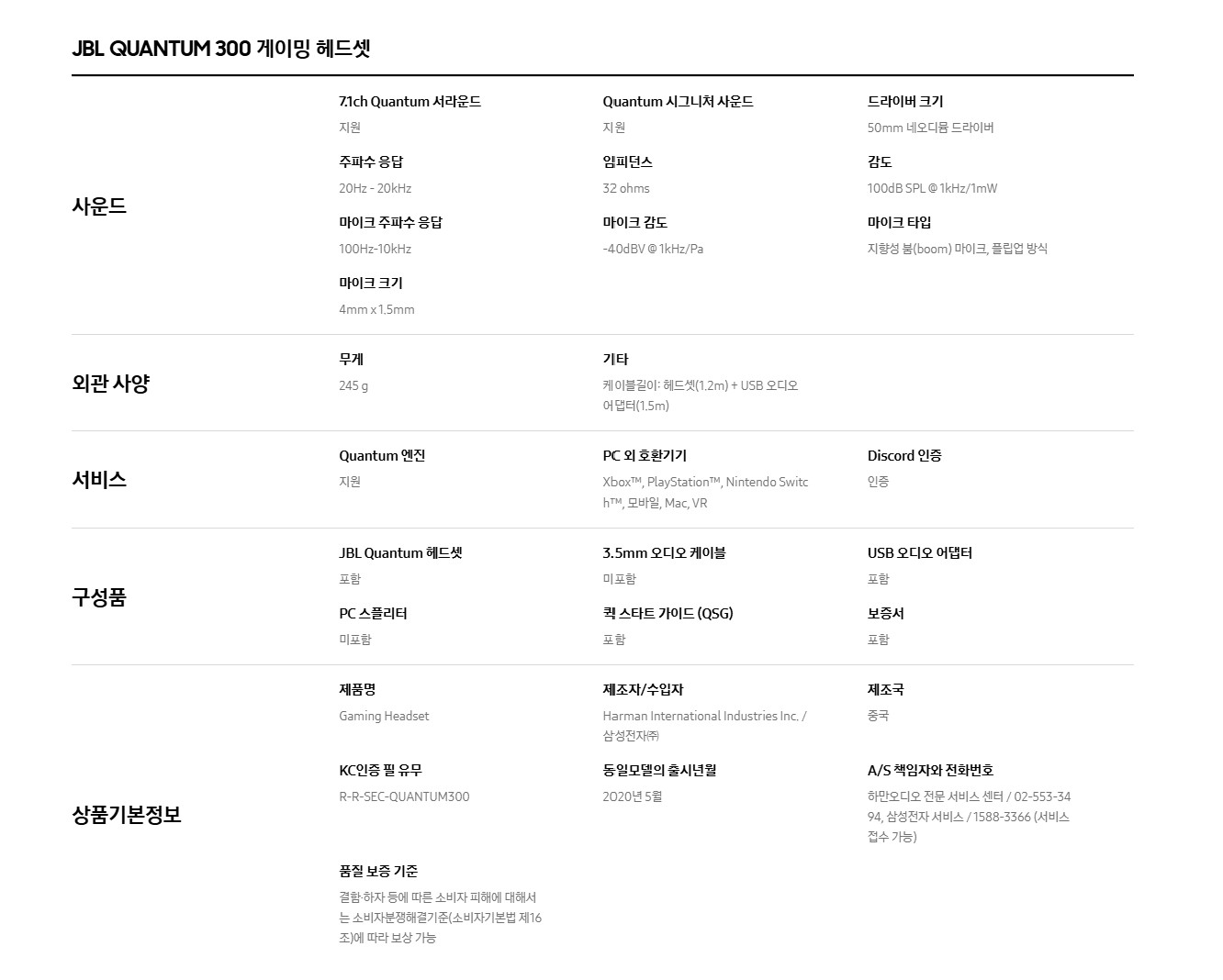 JBL QUANTUM 300 게이밍 헤드셋